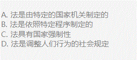 第1题 法是一种特殊的社会规范,关于法的特征的表述有误的是()。(1分)