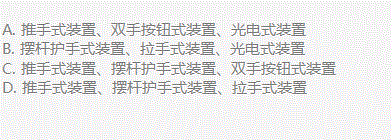 第5题 冲压设备的安全装置按其结构分为机械、按钮、光电、感应等类型的安全装援。其中,(全部属于机械类型的安全装置。(1分)