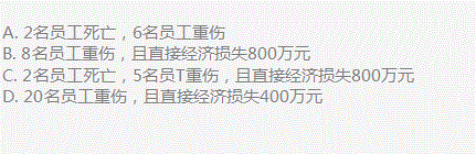 第1题 某地2009年上半年发生了四起生产安全事故,人员伤亡和经济损失分别如下。根据《生产安全事故报告和调查处理条例》(国务院令493号)的规定,其中属于较大事故的是()。(1分)