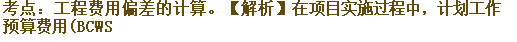 CV=BCWP-ACWP,由于两项参数均以已完工作为计算基准,所以两项参数之差,反映项目进展的费用偏差。