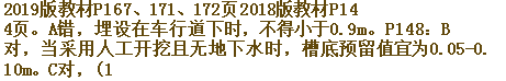 div id="Pr_DivAnswer" style="padding-top: 5px; padding-right: 5px; padding-bottom: 5px; padding-left: 5px; font-family: Simsun; font-size: 14px; font-weight: 600; text-align: left; "【正确答案】:BCDE/divdiv id="Pr_IsTrue" style="font-family: Simsun; font-size: 14px; font-weight: 600; text-align: left; background-color: black; width: 140px; color: white; line-height: 24px; height: 24px; background-image: initial; background-attachment: initial; background-origin: initial; background-clip: initial; "您答错了!/divdiv style="font-family: Simsun; font-size: 14px; font-weight: 600; text-align: left; " 本题解析:/divdiv id="Pr_Pic" style="font-family: Simsun; font-size: 14px; font-weight: 600; text-align: left; "【考点】燃气管道埋设的基本要求。【解析】地下燃气管道埋设在车行道下时,最小覆土厚度(路面至管顶)不得小于0.9m。管道沟槽应按设计规定的平面位置和标高开挖;当采用人工开挖且无地下水时,槽底预留值宜为0.05~0.10m;当采用机械开挖且有地下水时,槽底预留值不小于0.15m;管道安装前应人工清底至设计标高。管道两侧及管顸以上0.5m内的回填土,不得含有碎石、砖块等杂物,且不得采用灰土回填。回填土应分层压实,每层虚铺厚度宜为0.2~0.3m,管道两侧及管顶以上0.5m内的回填土必须采用人工压实,管顶0.5m以上的回填土可采用小型机械压实,每层虚铺厚度宜为0.25~0.4m。回填土压实后