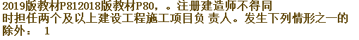 2018版教材P80,。注册建造师不得同时担任两个及以上建设工程施工项目负
