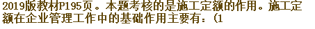 1.施工定额是企业计划管理的依据。表现为施工定额是企业编制施工组织设计的依据,