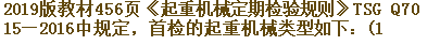 ( 2 ) 《起重机械定期检验规则》吨G Q 7 0 1 5 - 2 0 1 6 中规定, 首检的起重机械类型如下: