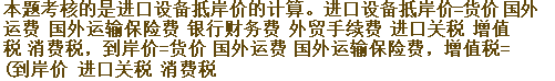抵岸价,指进口设备原价,在到岸价的基础上,再加上外贸手续费、关税、增值税、银行代理手续费等之后的价格
